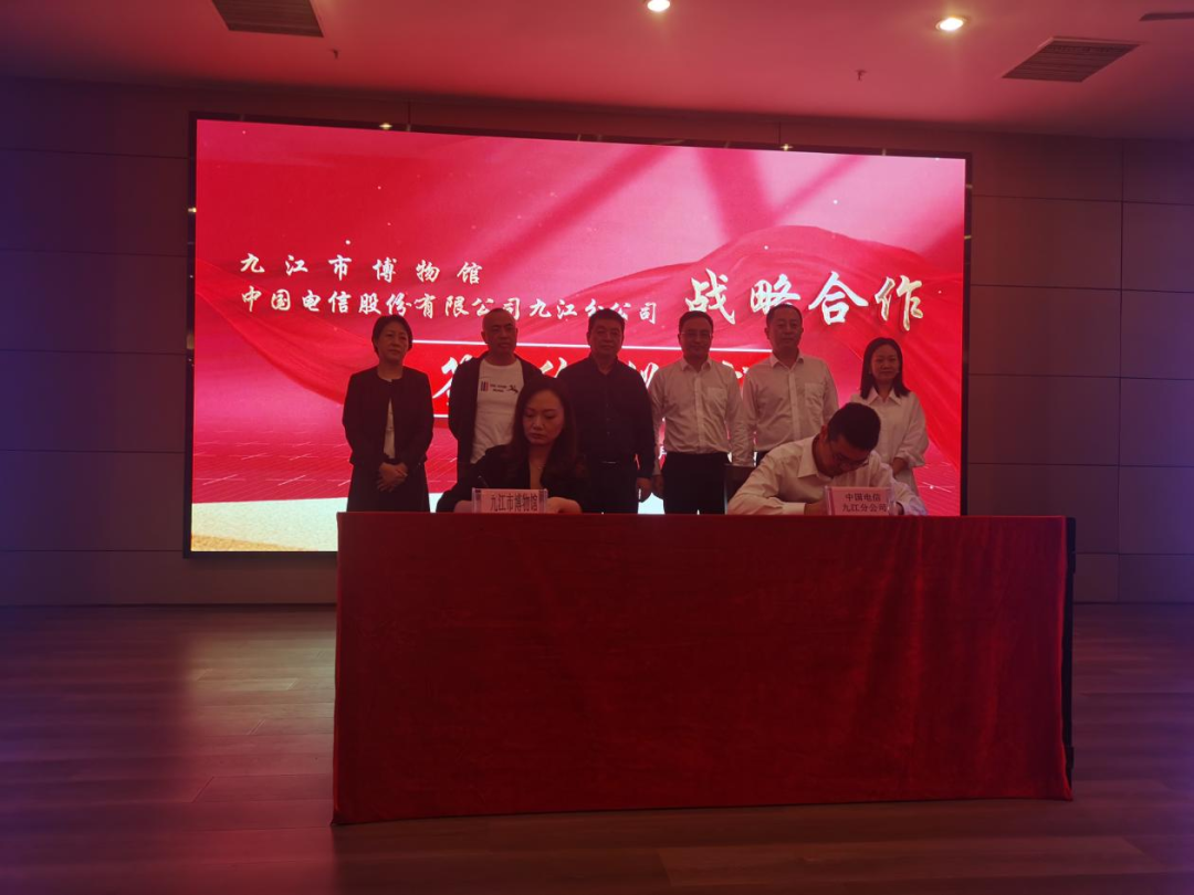 10月31日,九江市博物馆与中国电信股份有限公司九江分公司战略合作协议签约仪式在九江市博物馆举行。中国电信股份有限公司九江分公司党委书记、总经理杨文清,九江市文广新旅局党委委员、九江市博物馆馆长陈谦见证签约。中国电信股份有限公司九江分公司副总经理廖建华,九江市博物馆副馆长倪莎分别代表双方签署战略合作协议。九江市博物馆副馆长张剑敏主持签约仪式。中国电信股份有限公司九江分公司有关业务部负责人和九江市博物馆中层以上干部参加了签约仪式。
