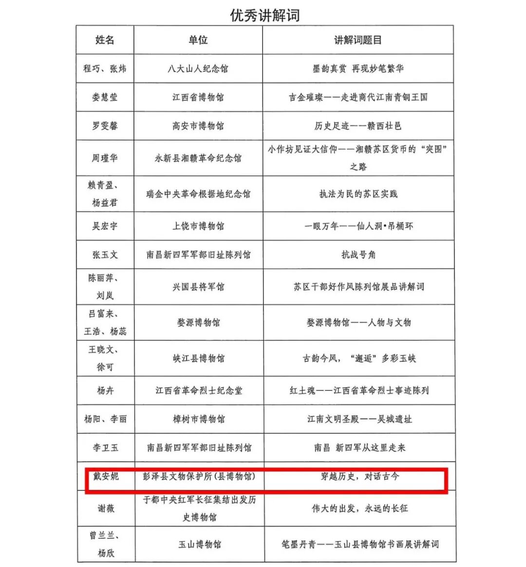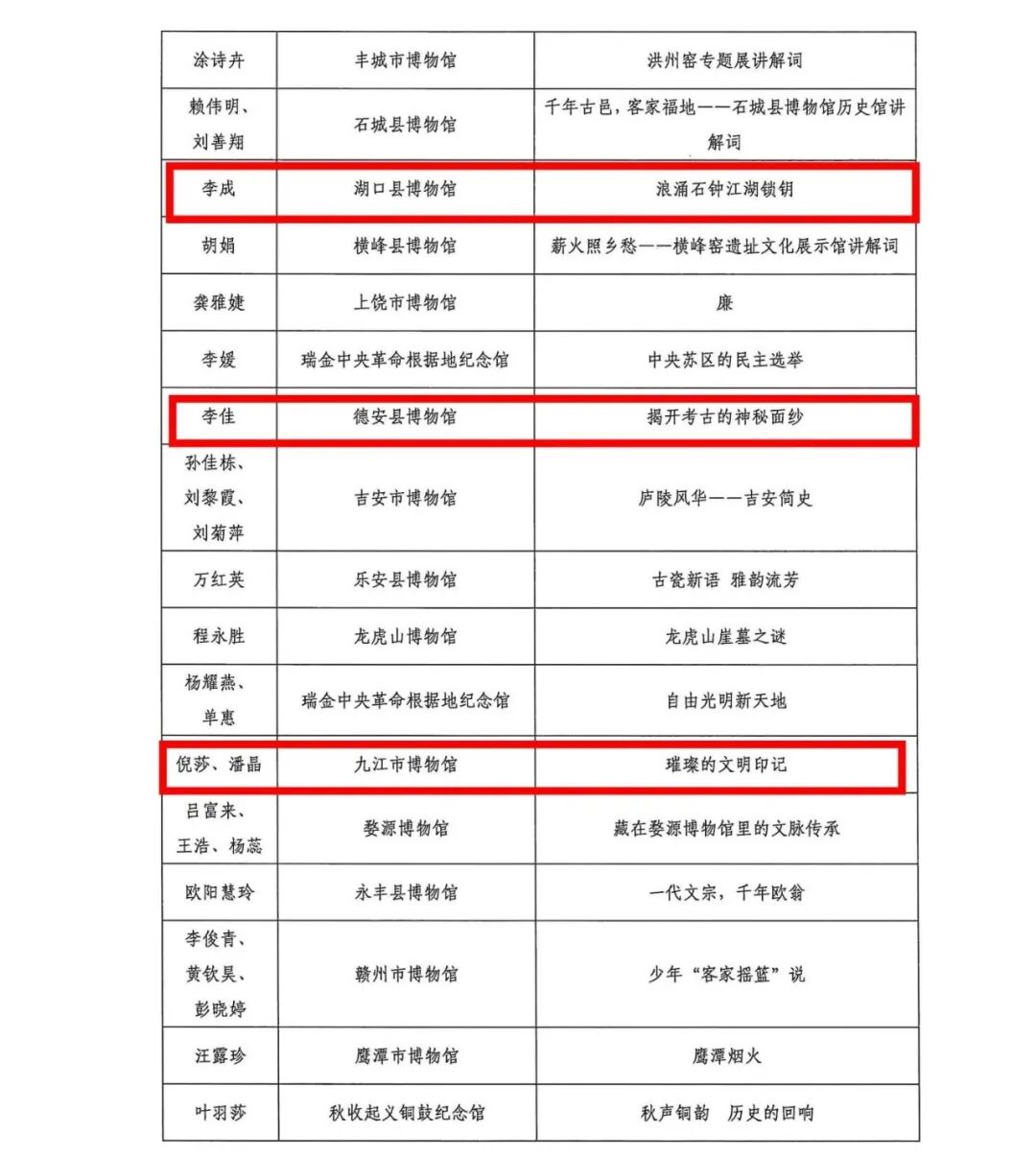 此次获奖不仅是对我市文化工作者辛勤创作的肯定,更是对各地历史文化传承和创新工作取得成绩的认可。今后,我市各博物馆纪念馆将以此为契机,继续深挖本土文化资源,创新文化表达方式,创作出更有创意更贴合群众更符合本土特色的讲解词,使博物馆纪念馆成为传播九江文化,展示九江形象的重要窗口,增强公众对九江历史文化的了解和认同,提升文化自信。