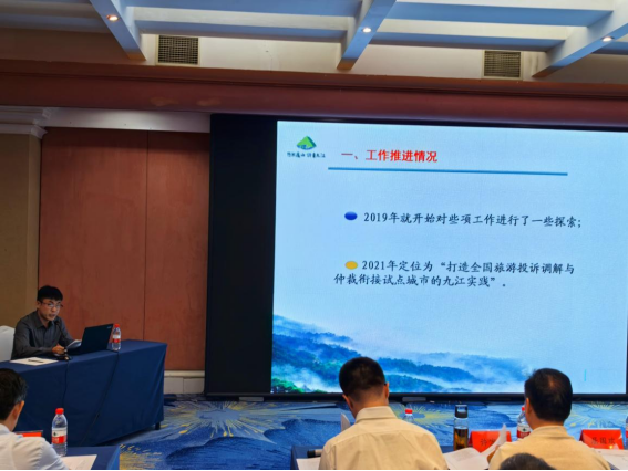 2024年9月25日全国文化和旅游市场举报投诉工作培训班在内蒙古呼和浩特市开班,文旅部文化市场综合执法监督局局长李健参加开班仪式并讲话,来自各省(市、自治区、新疆生产建设兵团)等文化旅游行政管理部门和执法机构等近百名代表参加,九江市就旅游投诉调解与仲裁衔接工作作了典型发言。