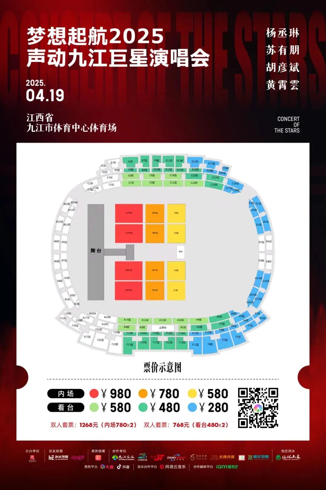 原价70元/人(内含浔阳楼门票20元/人,锁江楼20元/人,琵琶亭30元/人)。凭借演唱会门票,可享受专属折扣价7折,即浔阳江14元/锁江楼14元/琵琶亭21元。同时浔阳江号游轮夜游船票,原价98元,演唱会专属折扣价65元。
