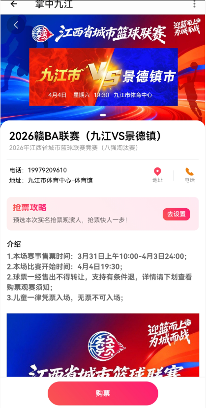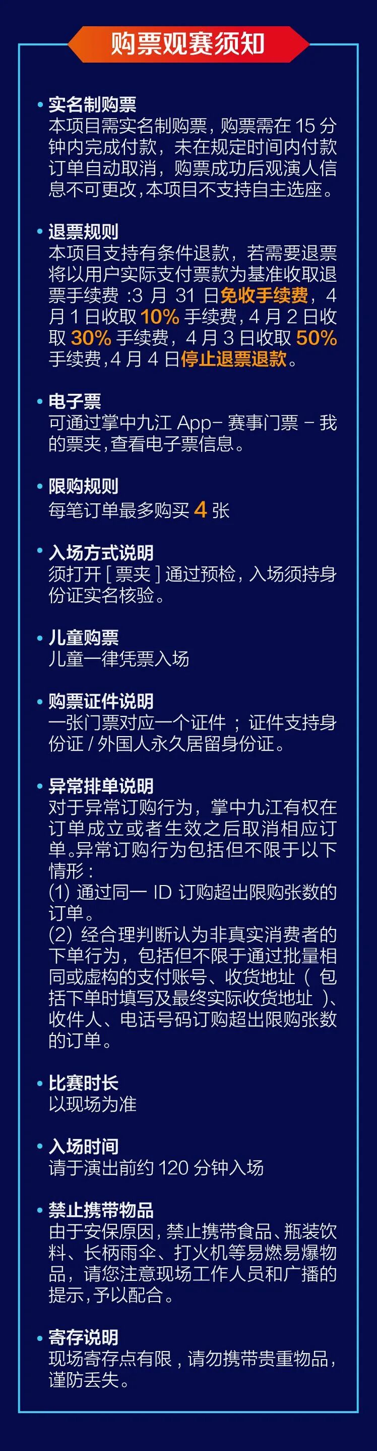 *预计售票火爆,请球迷朋友们务必提前登录“掌中九江App”,预录好身份信息,做好准备。