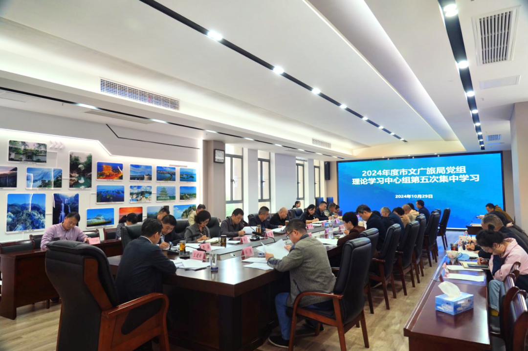 10月29日,市文广旅局召开党组理论学习中心组第五次集中学习会,专题学习《习近平法治思想》。局党组书记、局长王建新主持会议并讲话,局党组班子成员、县处级领导干部、局属各单位党政负责人、局机关各科室负责人参加会议。