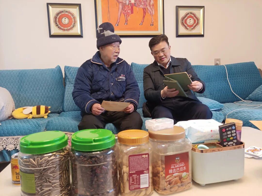春节前夕,市文广旅局领导分别赴各位生活困难党员、老党员、老干部家庭进行走访慰问。1月25日上午,局党组书记、局长王建新同志冒雨走访慰问了老党员、老局长杨明远同志。走访活动开展前,王建新局长要求相关科室同志全面掌握生活困难党员、老党员、老干部基本情况,了解他们的思想动态和诉求,力所能及地帮助解决实际困难,努力取得“慰问一人、温暖一户、带动一片”的良好效果。经过认真调查摸底和深入沟通,今年春节市文广旅系统共计慰问了102名老干部、老党员,其中领导上门走访慰问了10位老干部、10名困难老党员代表,发放慰问金9.36万元。