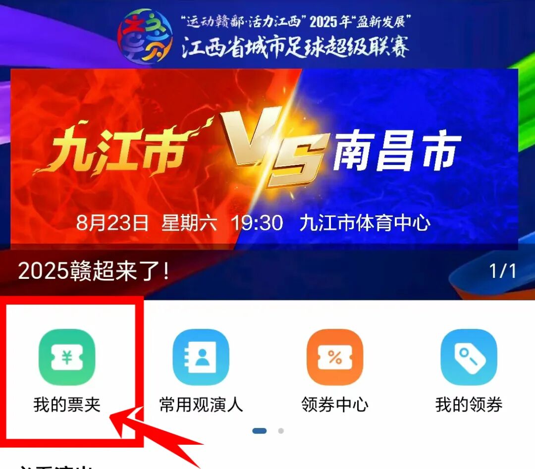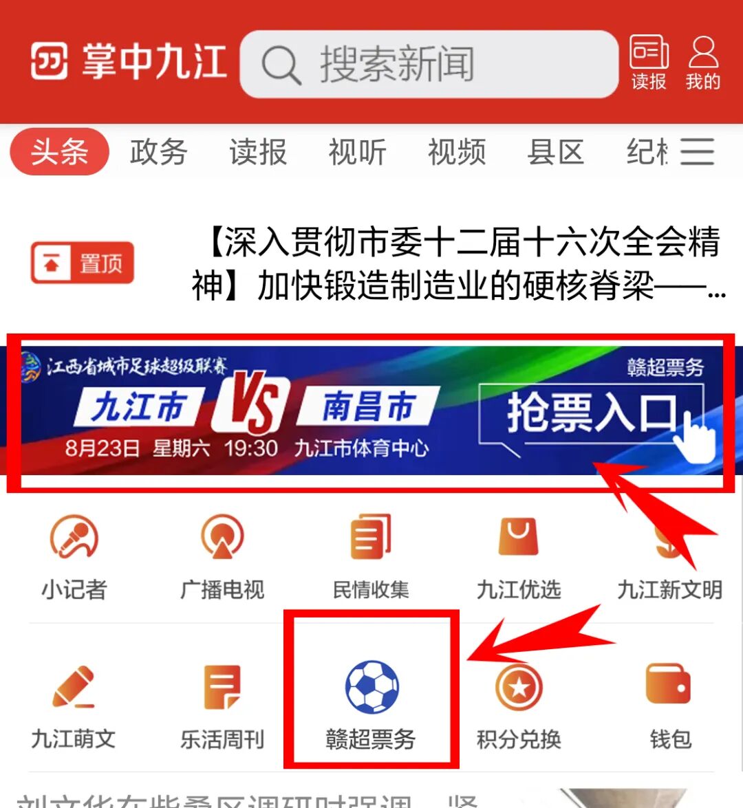 在掌中九江app头条页面点击赣超票务进入活动页面。