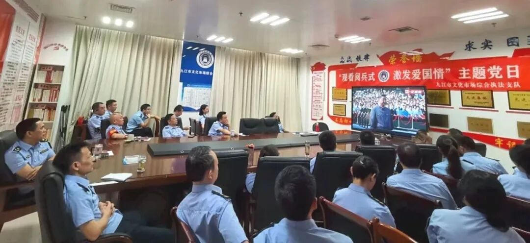 天安门广场盛装以待,长安街旌旗招展,今日上午9时,纪念中国人民抗日战争暨世界反法西斯战争胜利80周年大会在北京隆重举行。九江市文广旅系统党员干部齐聚一堂,共同观看这场彰显国威、军威的盛大活动。