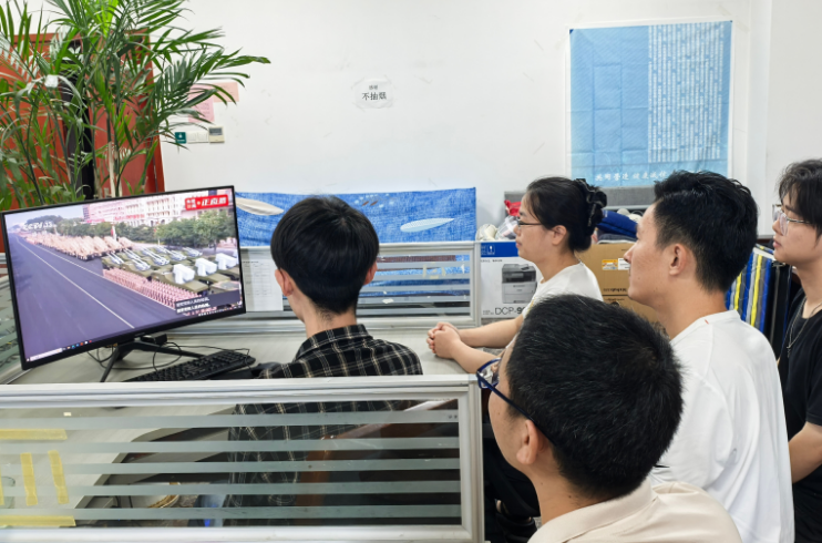 市文广旅局机关及9个局属单位通过央视新闻直播同步观看“纪念中国人民抗日战争暨世界反法西斯战争胜利80周年阅兵式”。会议室内,党员干部早早入座,民族自豪感澎湃激荡。当受阅部队在长安街列阵、装备方阵威武行进、空中梯队呼啸而过,现场气氛庄重热烈,掌声与自豪之情交相辉映。这些代表现代战争形态演变的最新装备,特别是首次公开亮相的国之重器,引起大家的阵阵赞叹。