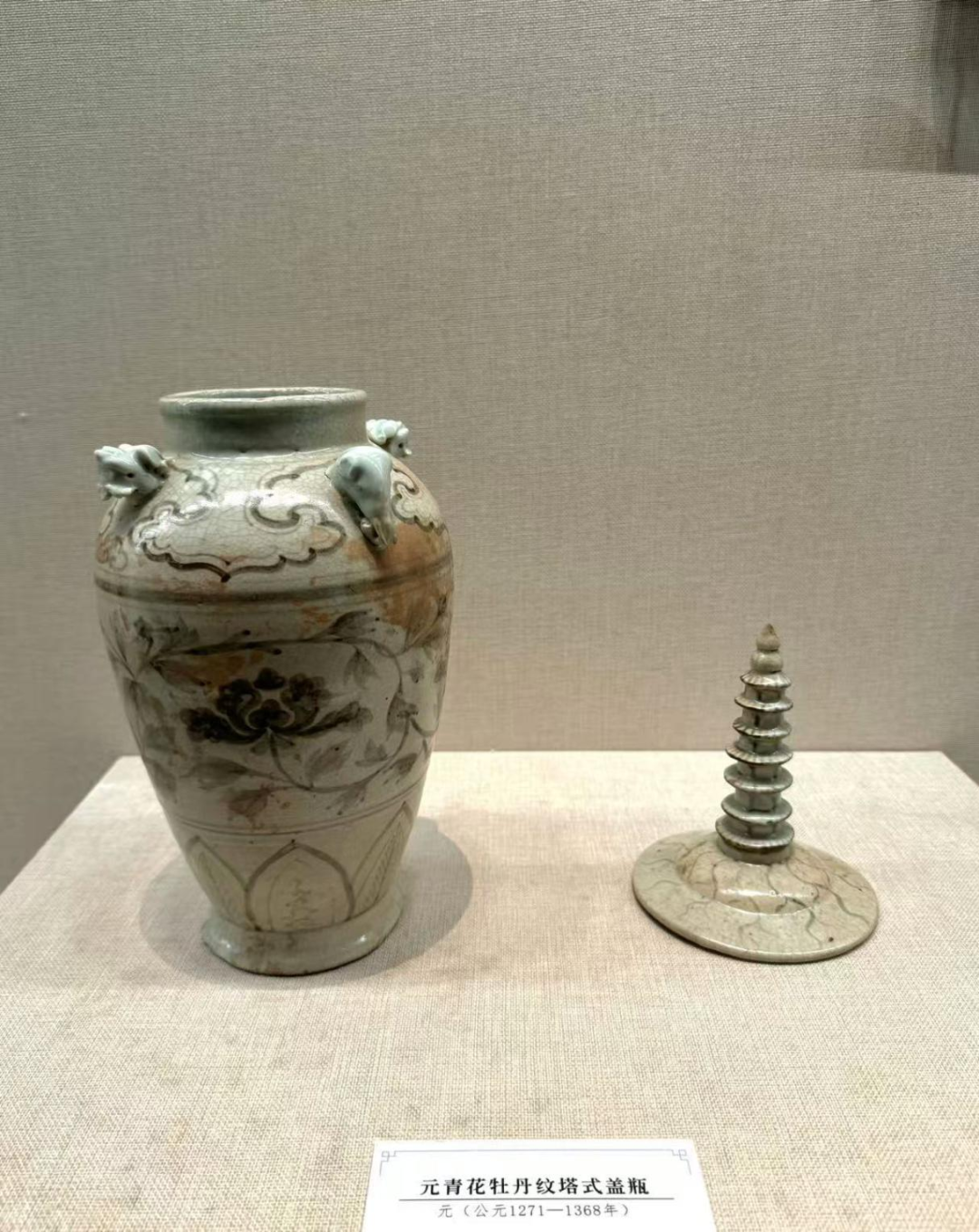 展览包含多件具有极高历史与艺术价值的珍稀文物。像元青花牡丹纹塔式盖瓶尽显元代青花“料色五分”的精湛技艺,是研究元代青花工艺与宗教文化交融的重要实物,兼具极高的历史研究价值与艺术审美价值,为观众带来强烈的视觉与文化震撼。