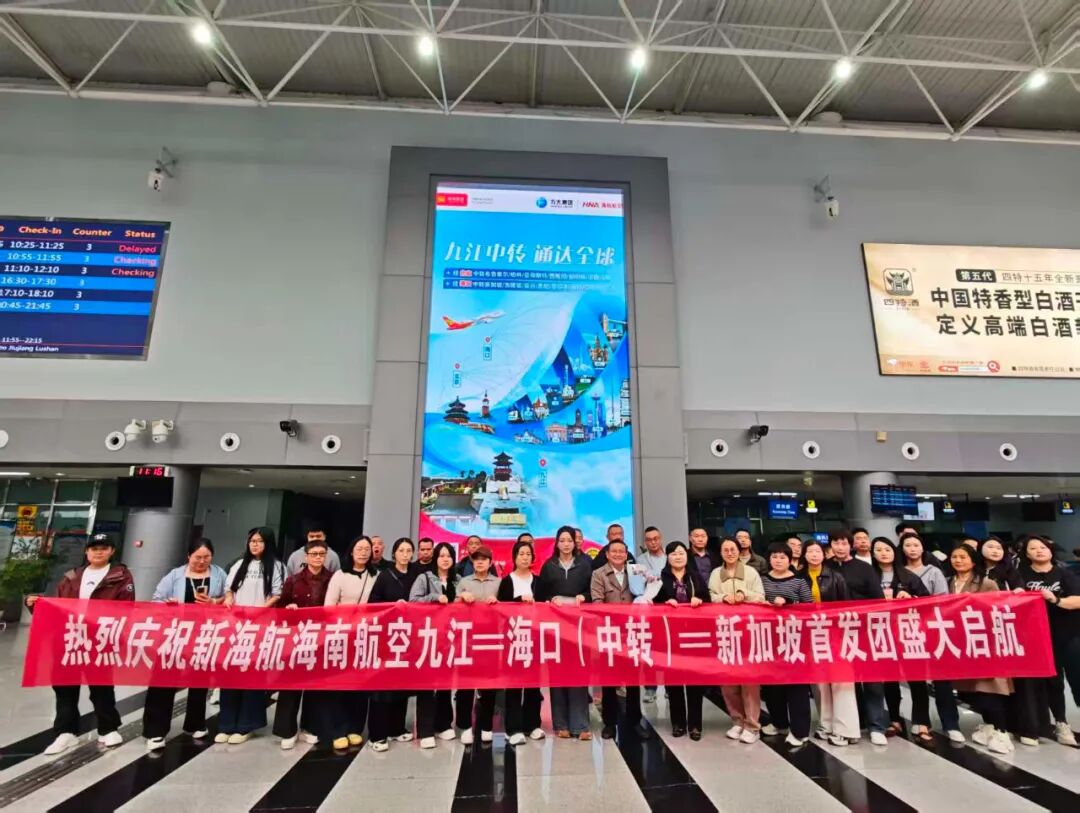 11月6日12时40分,海南航空的一架波音B737在九江庐山机场起飞,40名乘客组成的旅游团乘坐九江市首发国际联运中转航班,经海口中转新加坡,这意味着九江将成为赣北地区新的“空中出海口”。