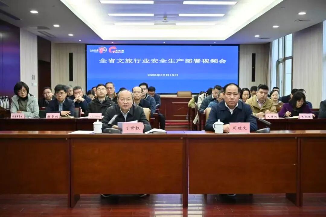 12月15日,省文化和旅游厅组织召开全省文化和旅游行业安全生产部署视频会,传达省领导有关指示批示,并对岁末年初全省文旅行业安全生产工作再强调、再部署。省文化和旅游厅党组成员、副厅长、省文物局局长丁新权,省文化和旅游厅党组成员、副厅长周建文分别作工作部署。
