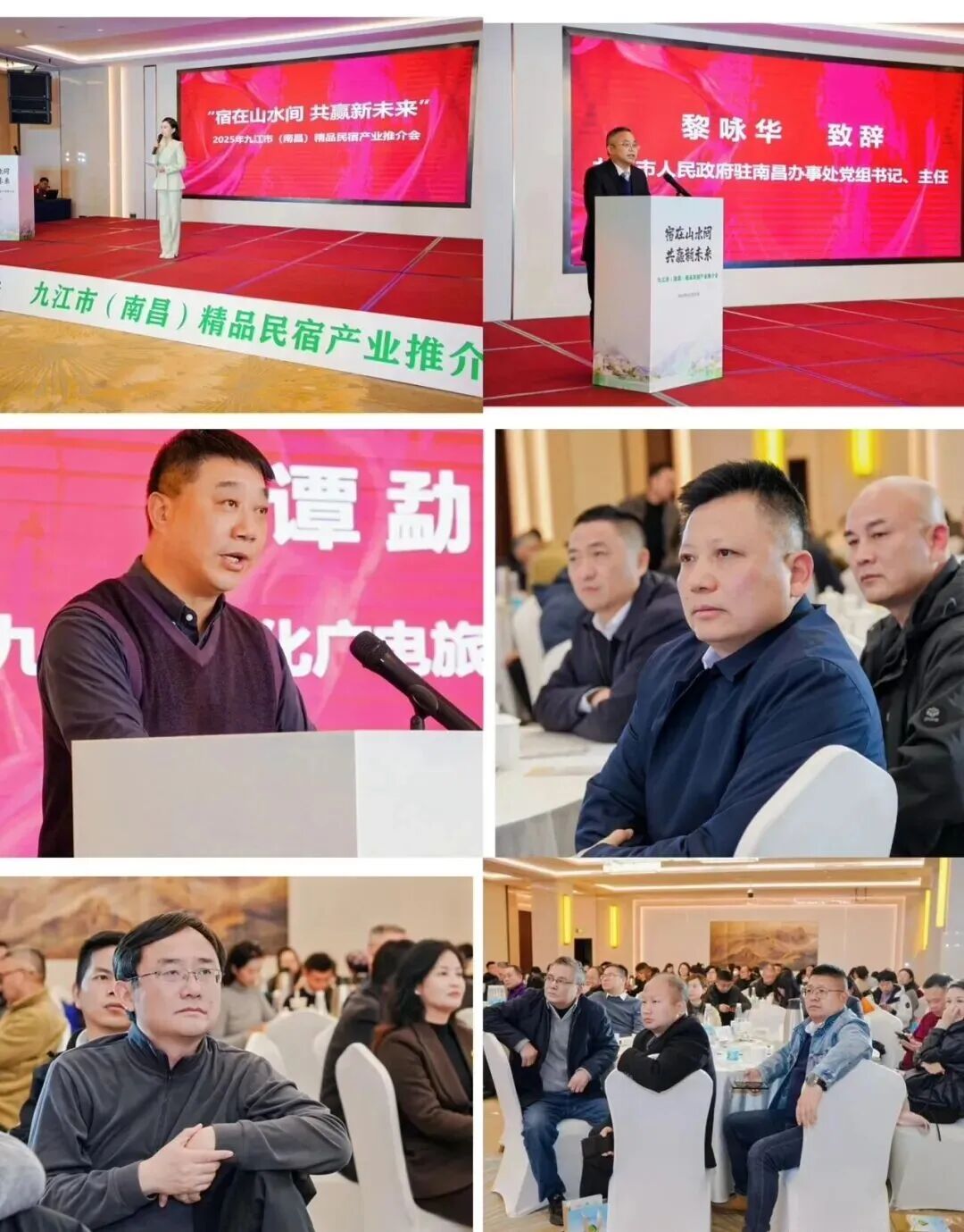 12月25日下午,“宿在山水间 共赢新未来”2025年九江市精品民宿产业推介会在南昌成功举行。活动由九江市政府驻南昌办事处、九江市文化广电旅游局主办。九江市人民政府驻南昌办事处党组书记、主任黎咏华,南昌市文化广电旅游局党组副书记、副局长刘斯武,九江市文化广电旅游局党组成员、副局长谭勐出席活动。庐山市文化旅游发展委员会、庐山西海风景名胜区、武宁县、永修县文旅部门负责同志,九江精品民宿企业代表,以及来自南昌的旅行社、商(协)会、高校校友会、研学机构与媒体代表等各界嘉宾共聚一堂,共话合作、共谋发展。