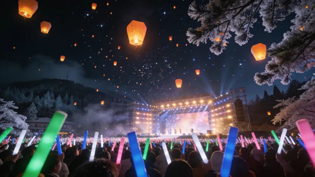 演出高潮时,灯光暗下,荧光棒被一起举起——绿的、蓝的、粉的、白的,在夜色中挥舞、摇曳,汇成一片流动的星海。