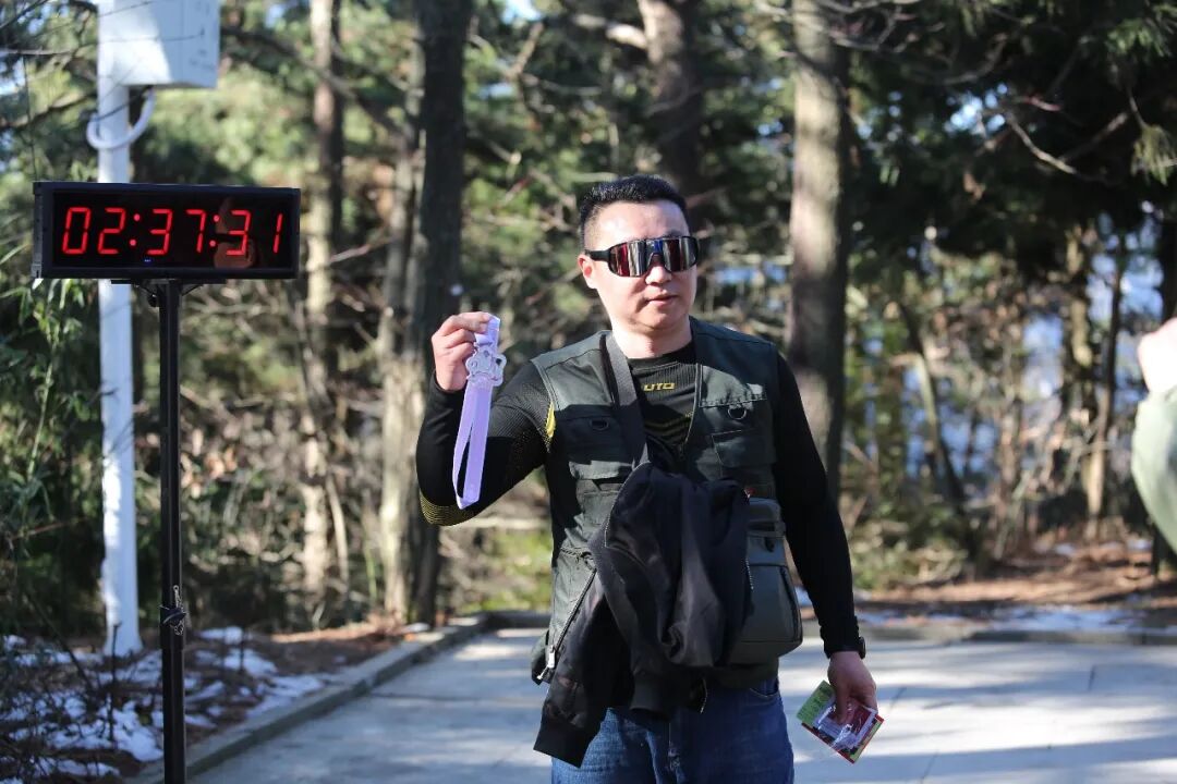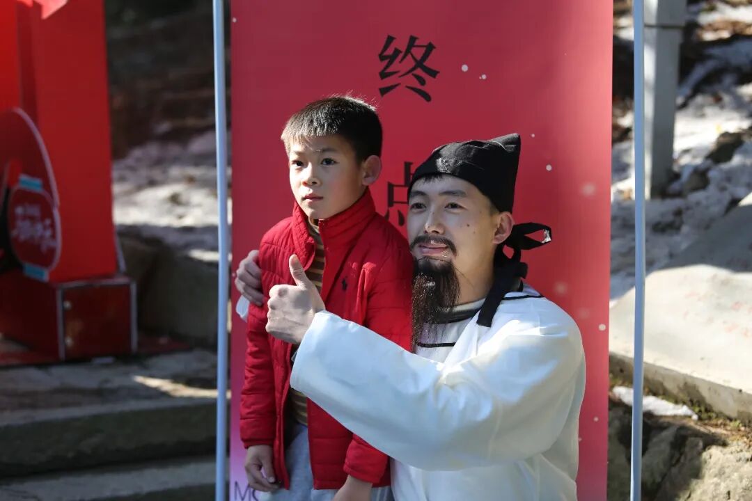 本次活动将登山健身与诗词文化深度融合,成为一大亮点。身着古装的李白、孟浩然NPC沿途伫立,与登山爱好者开展古诗背诵、诗词接龙等互动通关游戏。濂溪区第一小学的胡淑萌在途中巧遇“孟浩然”,流利背诵《春晓》顺利通关。成功登顶后,她参与抽奖领取书签等纪念品,笑着说:“我想只要坚持就能登顶,一直爬啊,终于到达终点。”来自瑞昌的登山爱好者费先生也感慨:“我是第一次登好汉坡,感觉非常好,路上风景秀美,设施保障充足。”