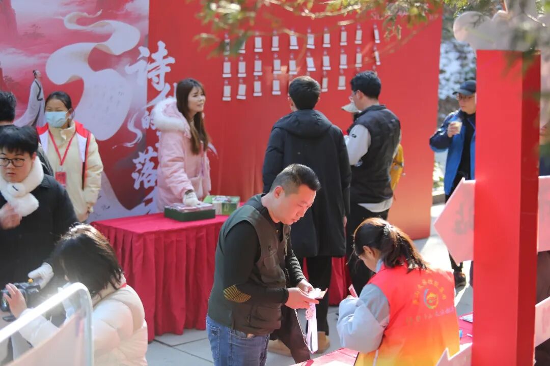 终点处热闹非凡,陆续抵达的选手们或参与抽奖,或与“李白”对诗,欢笑声此起彼伏。