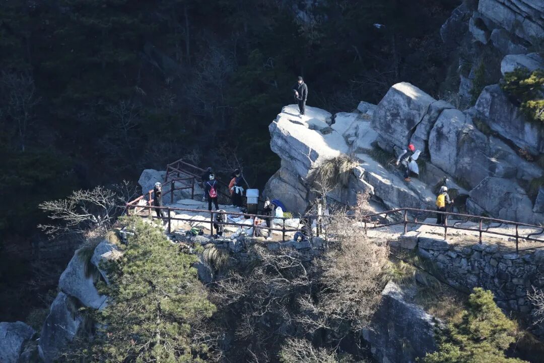 发令笛清脆声响彻山谷,蓄势待发的登山爱好者们精神抖擞,沿着蜿蜒的好汉坡古道拾级而上。沿途苍松翠柏错落有致,冬日暖阳穿透枝叶,在石阶上洒下斑驳光影,清新的草木气息扑面而来。登山队伍里,有步履稳健的老人、蹦跳嬉闹的孩童,也有相互搀扶的情侣,大家在攀爬中享受运动乐趣,在远眺间领略庐山“九江秀色可揽结”的壮阔景致。