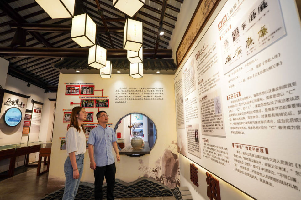 2024年7月4日,参观者在苏州市吴江区平望镇廉洁教育基地莺湖廉园内参观。新华社记者 李博 摄党的二十届四中全会《建议》鲜明提出,弘扬诚信文化、廉洁文化。2025年,新时代廉洁文化建设三年行动计划(2025—2027年)制定出台,对加强新时代廉洁文化建设作出具体部署。各地纪检监察机关联合相关部门,通过精准施策、创新表达、协同联动等多种方式,不断增强廉洁文化的针对性、吸引力和感染力,涵养风清气正政治生态、营造崇廉拒腐社会风尚。
