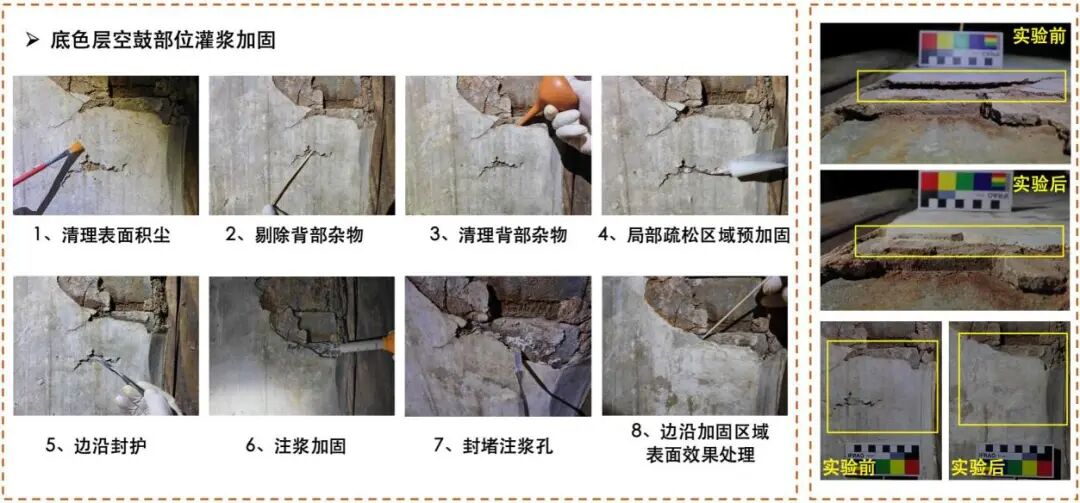《红色标语保护修复技术指导意见》系统总结了江西省在红色标语保护领域的技术实践和经验,针对红色标语变形、脱落、空鼓、粉化等典型病害,制定了具体的材料筛选标准和操作流程。文件创新性地将三维激光扫描、高光谱成像、紫外荧光摄影等尖端检测技术纳入勘察规范,能够精准识别标语隐藏信息、分析材料成分,为重现已褪色的文字内容提供技术支撑。在修复工艺方面,文件强调“最小干预、原真保护”的原则,要求所有修复材料必须通过实验室检测和现场试验验证。这项技术成果填补了国内没有红色标语修复技术指导文件的空白,为全国同类型文物保护提供了可复制的“江西标准”。