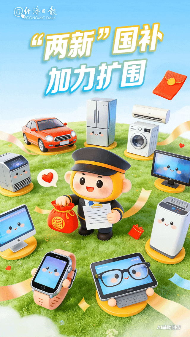2026年“两新”政策继续实施汽车报废更新和汽车置换更新补贴;继续实施家电以旧换新补贴,支持范围聚焦冰箱、洗衣机、电视、空调、电脑、热水器等6类产品;同时,将数码产品购新补贴拓展为数码和智能产品购新补贴,支持范围包括手机、平板、智能手表(手环)、智能眼镜和智能家居产品(含适老化家居产品)。