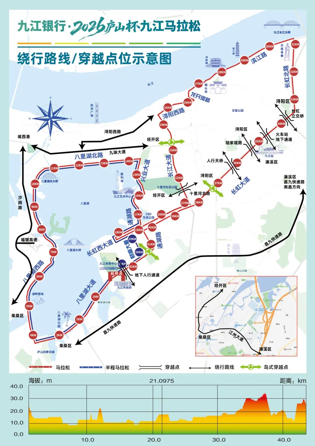 2026九江马拉松为了在保障赛事安全顺畅的同时,更大限度减少对市民周末出行的影响,组委会与市公安局、市交管支队等部门协同,借鉴国内先进赛事经验,在部分路段实施“岛式穿越”疏导措施。经实地勘察,本届赛事将在以下3处路口设置“岛式穿越”点: