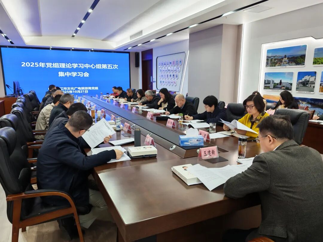 10月21日上午,市文广旅局党组召开2025年第五次党组理论学习中心组集体学习会,专题学习《习近平谈治国理政》第五卷。局党组书记、局长王建新主持会议并讲话。